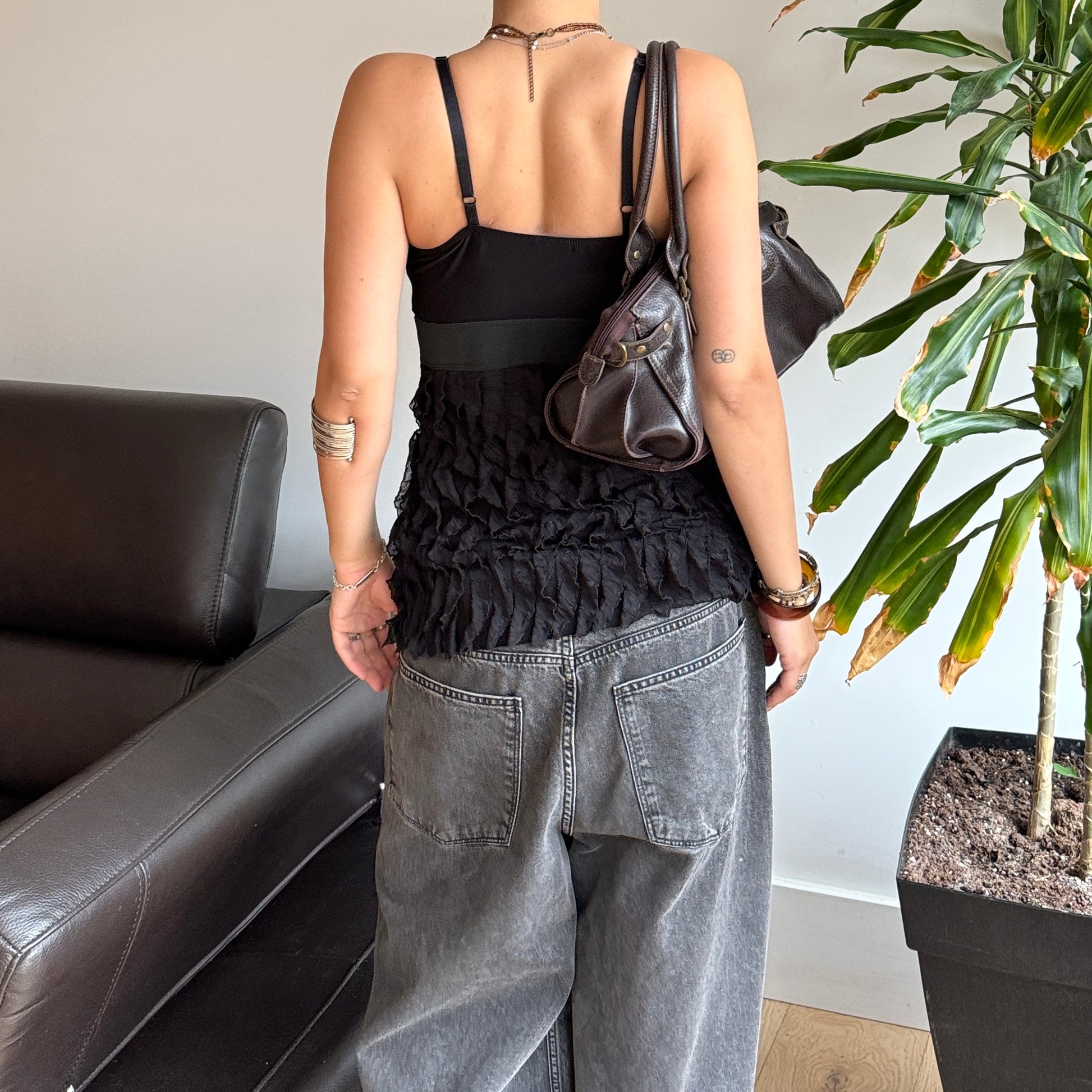 Black Babydoll Ruffle Top