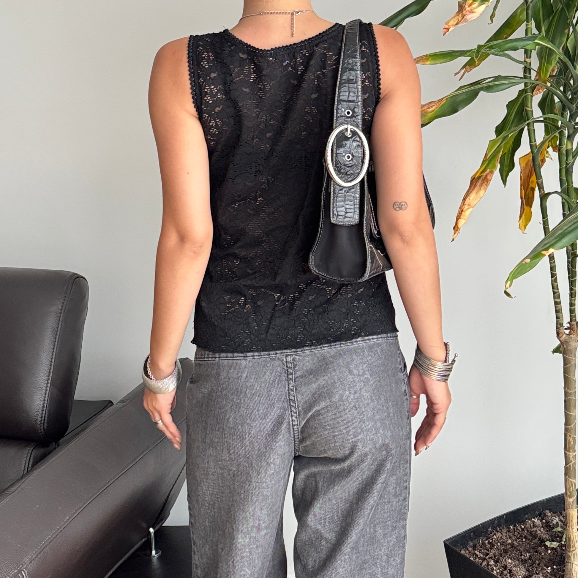Black Lace Tie-Up Top