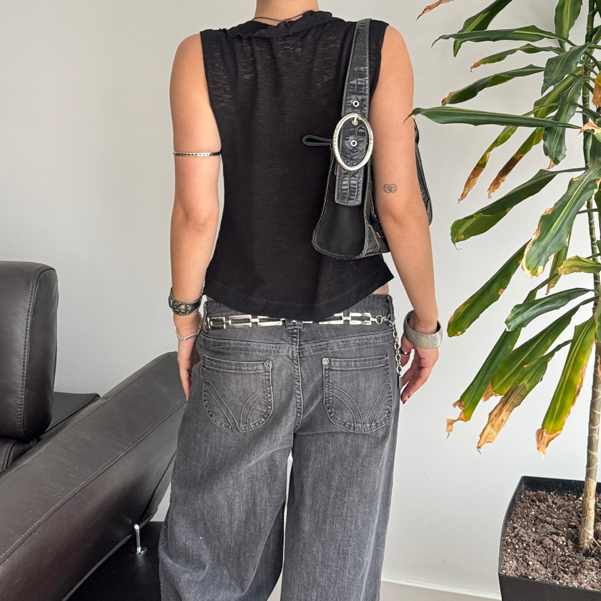 Black Mesh Ruffle Top