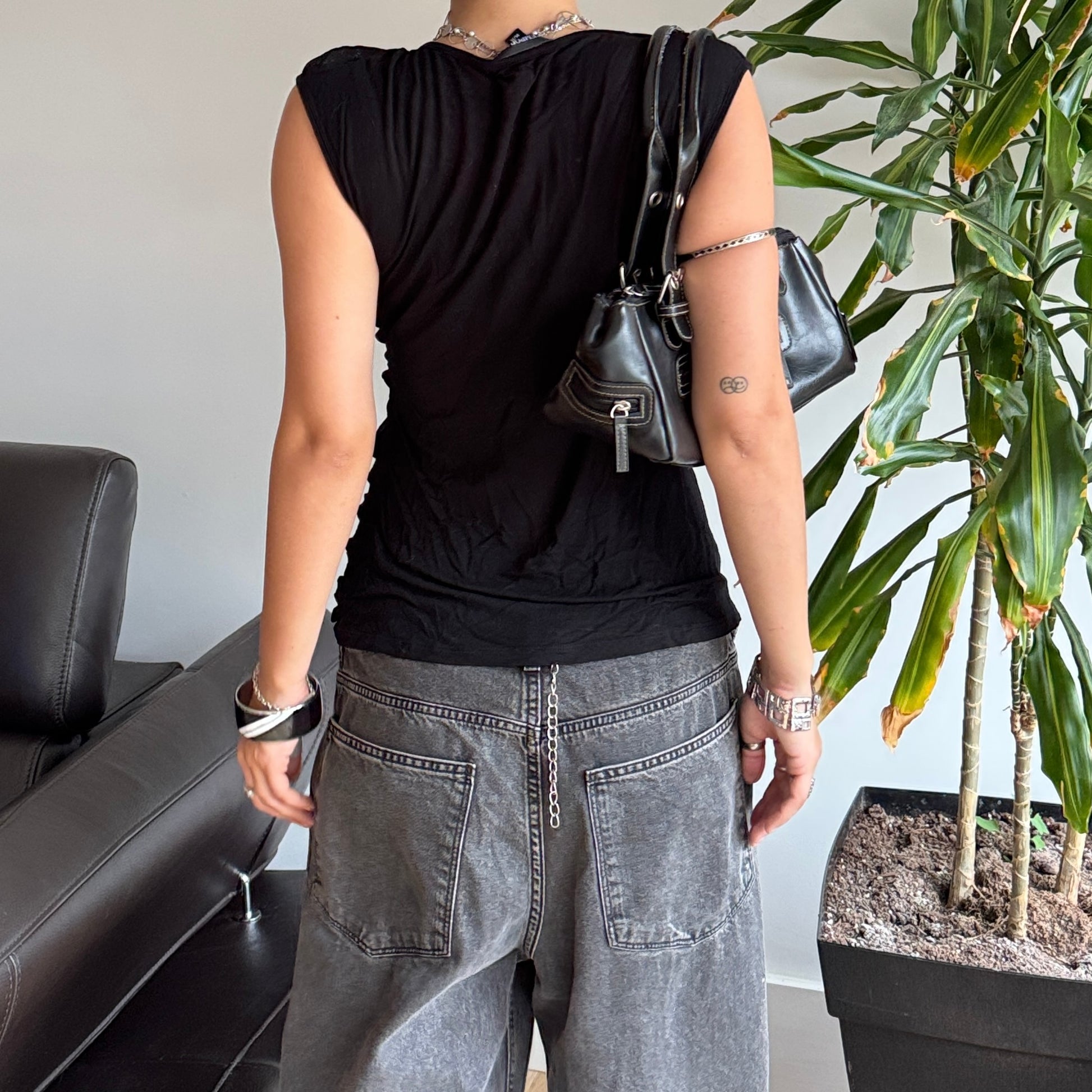 Black Unique Ruffle Top