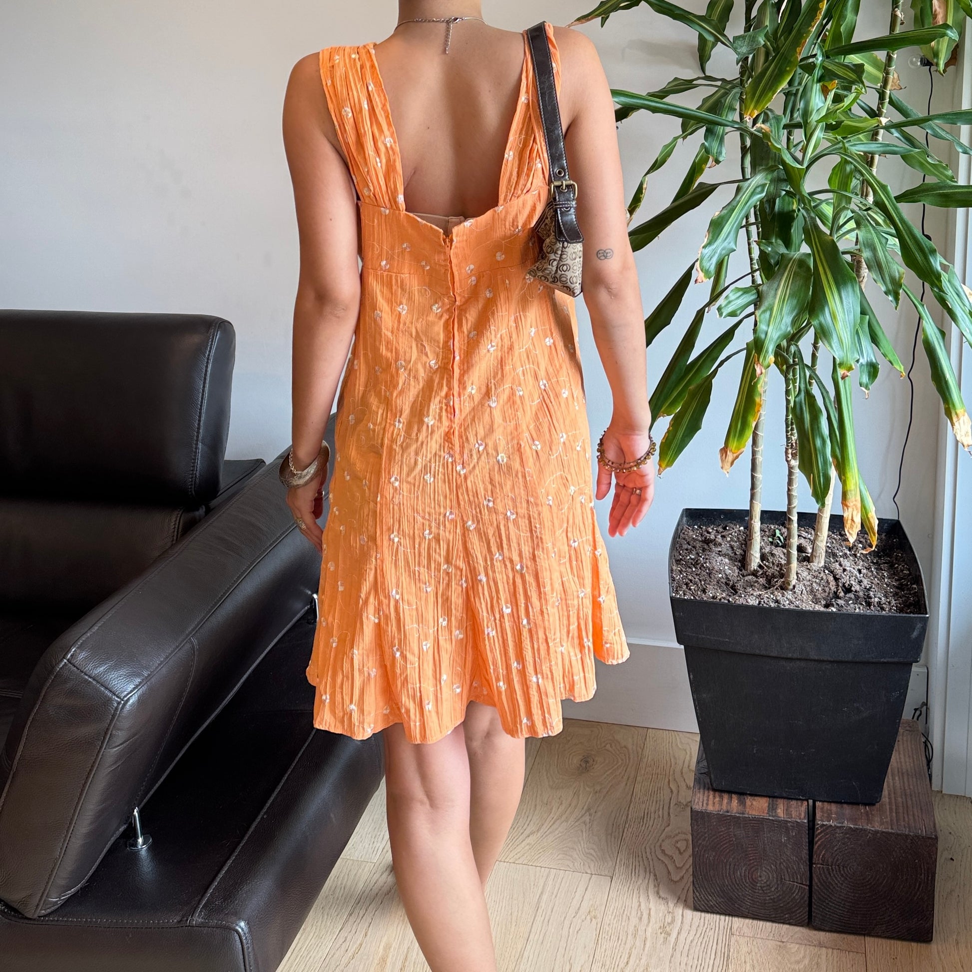 Orange Embroidered Floral Dress